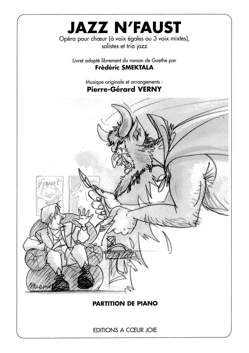 Venez découvrir Jazz n’Faust, livret adapté librement du roman de GOETHE par Frédéric SMEKTALA et harmonisé par Pierre-Gérard VERNY pour choeur voix égales ou 3 voix mixtes, soliste et Trio Jazz