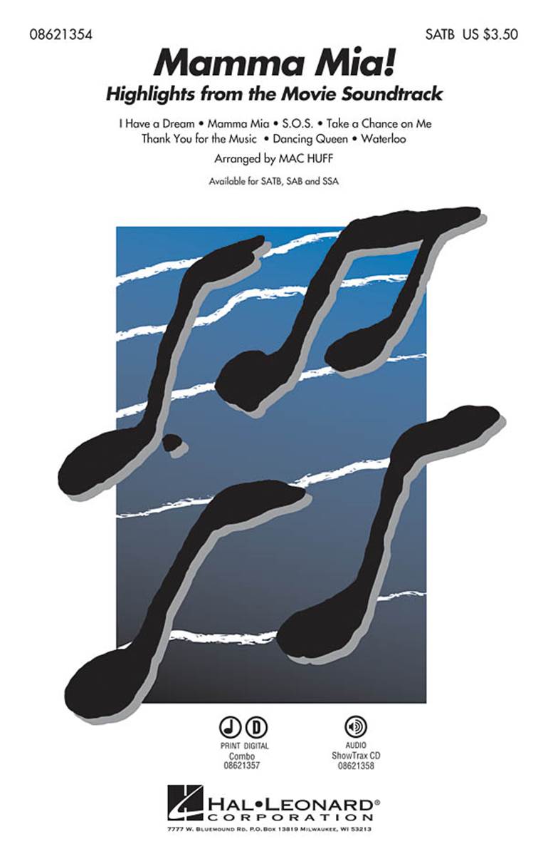 Une sélection des meilleurs moments de la chorale de la comédie musicale Mamma Mia ! Les gens du monde entier sont tombés amoureux de cette histoire d'amour et d'amitié, basée sur la musique d'Abba. Avec plus de productions jouées sur la scène internationale que toute autre comédie musicale, Mamma Mia ! est le spectacle numéro un au monde ! Ces six chansons, destinées à la chorale de la SATB, sont un vrai plaisir à jouer et à écouter. Comprend Waterloo, Dancing Queen, Mamma Mia, et plus encore.
