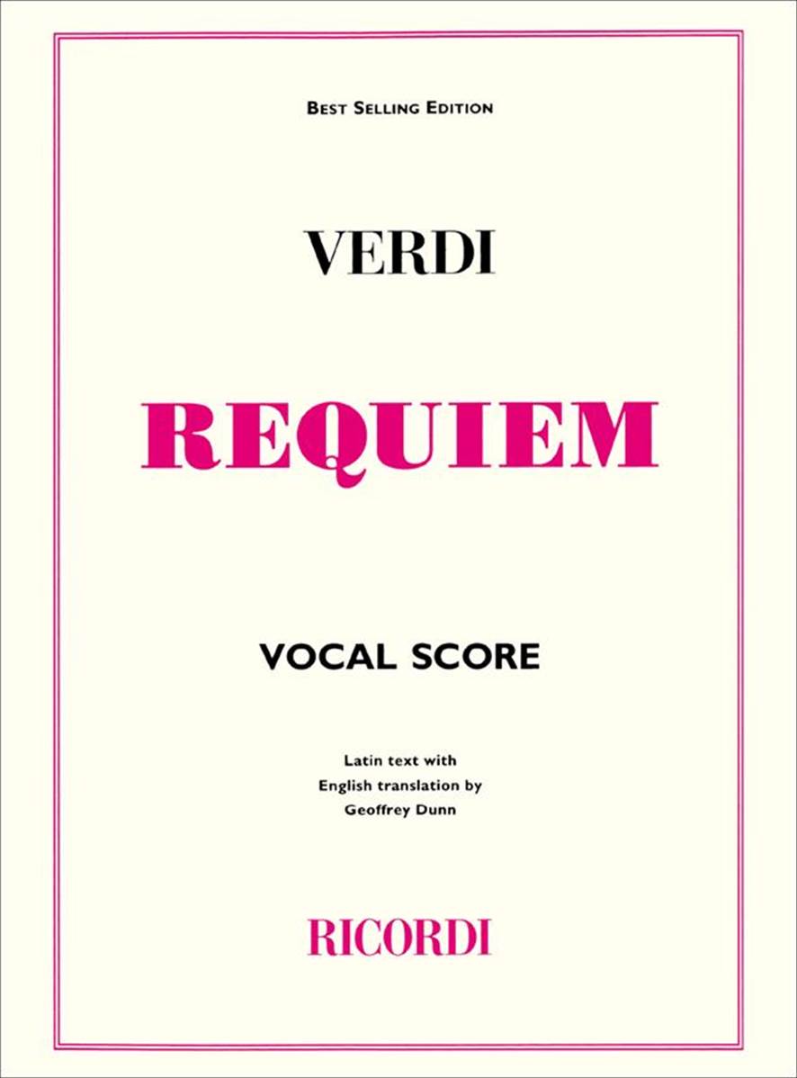 Partition vocale complète du Requiem de Verdi. Textes en latin avec traduction anglaise par Geoffrey Dunn.